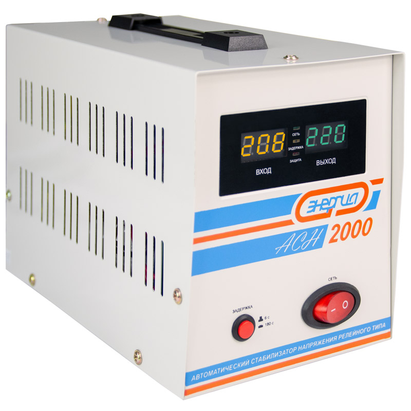 Релейный однофазный стабилизатор напряжения переменного тока предназначен для стабилизации переменного напряжения в сети электроснабжения для потребителей бытового и аналогичного назначения. Изделие относится к классу автотрансформаторных стабилизаторов со ступенчатым регулированием напряжения путем переключения отводов силового автотрансформатора с помощью электромеханических силовых реле, таким образом стабилизаторы Энергия АСН регулируют напряжение по релейному принципу.